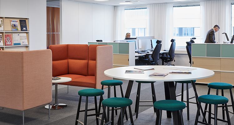 Den naturliga samlingsplatsen på vårt kontor är vår trevliga bistro där många av oss äter lunch tillsammans. Har du ingen lunch med dig kan du köpa den i vår matkyl. I bistron finns också kaffe och frukt.